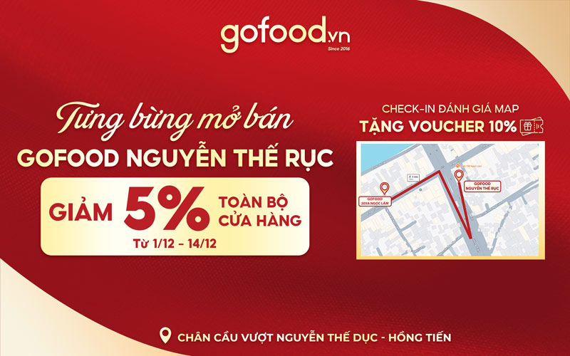 Giảm 5% tất cả sản phẩm khi mua hàng trực tiếp tại Gofood Nguyễn Thế Rục.