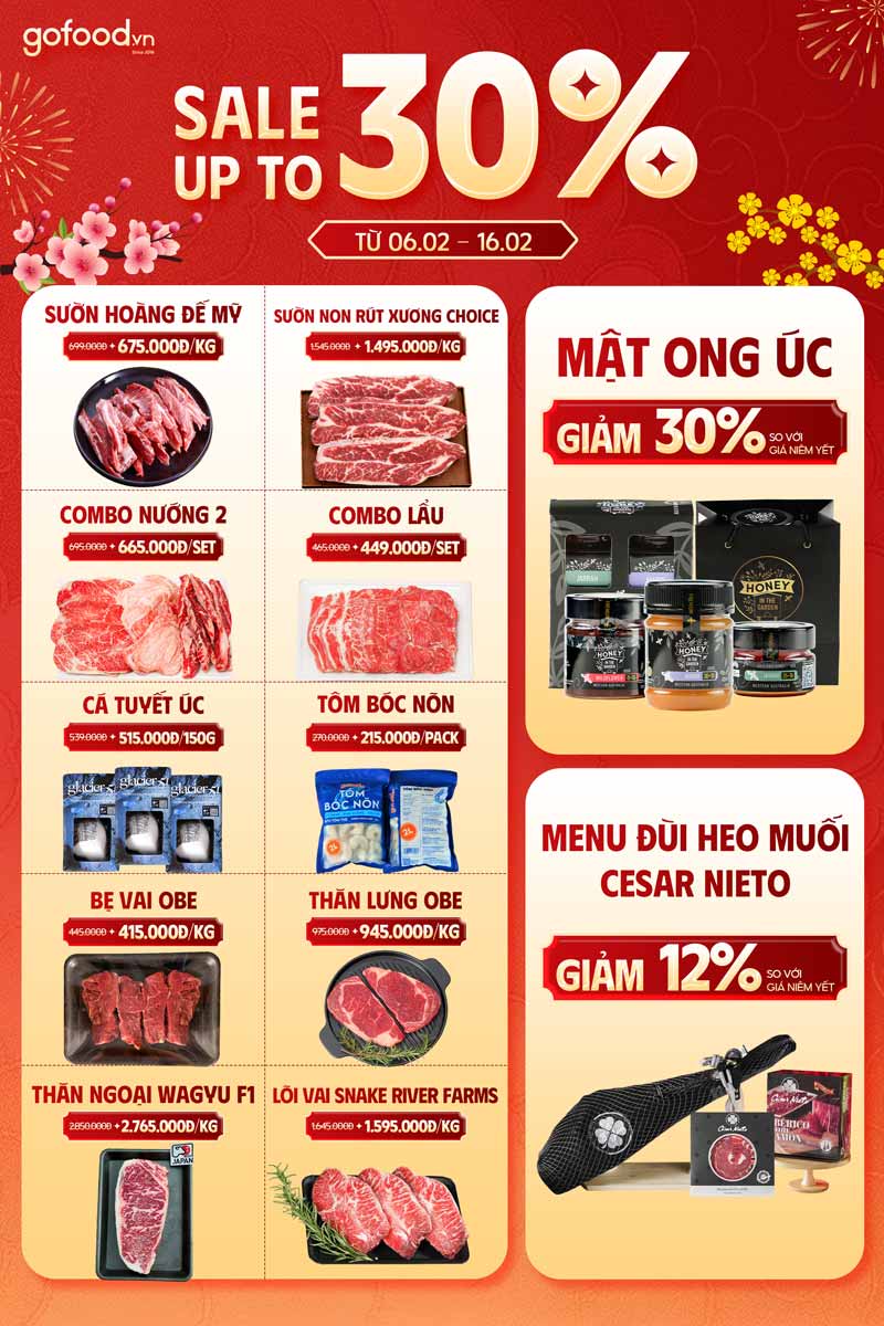 Dịp Tết 2026, Gofood mang đến nhiều ưu đãi hấp dẫn cho loạt thực phẩm nhập khẩu chất lượng, cao cấp giúp cả nhà chuẩn bị bàn tiệc và quà biếu Tết vừa ngon vừa tiết kiệm.