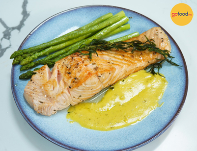 Sau khi chế biến từng nguyên liệu, bạn cho măng tây lót xuống đáy đĩa, đặt phần cá hồi lên và rưới sốt chanh dây lên trên cùng. Bạn cũng có thể sử dụng một chút tiêu để tăng thêm hương vị cho món ăn. Vậy là không cần phải nghĩ phi lê cá hồi làm gì ngon với món cá hồi sốt chanh dây ngon tuyệt cú mèo cho bữa cơm gia đình rồi!
