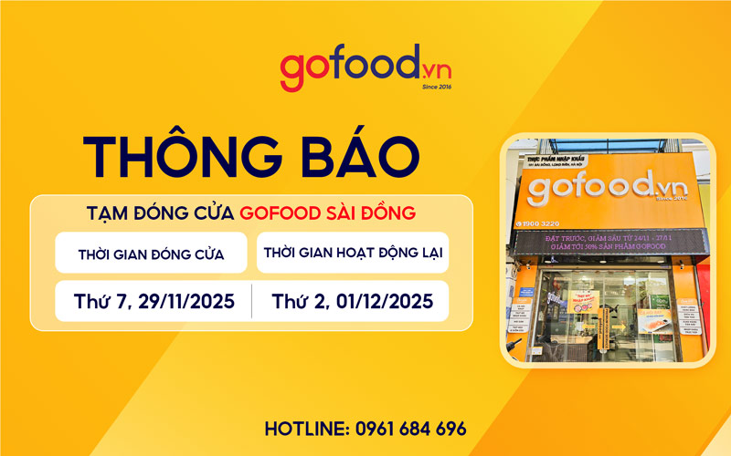 Gofood Sài Đồng sẽ tạm đóng cửa từ ngày 29/11 - 30/11 do một số lý do khách quan. Trong thời gian này, Gofood Sài Đồng vẫn phục vụ khách hàng online bình thường với nhiều ưu đãi hấp dẫn trên các kênh đặt hàng!